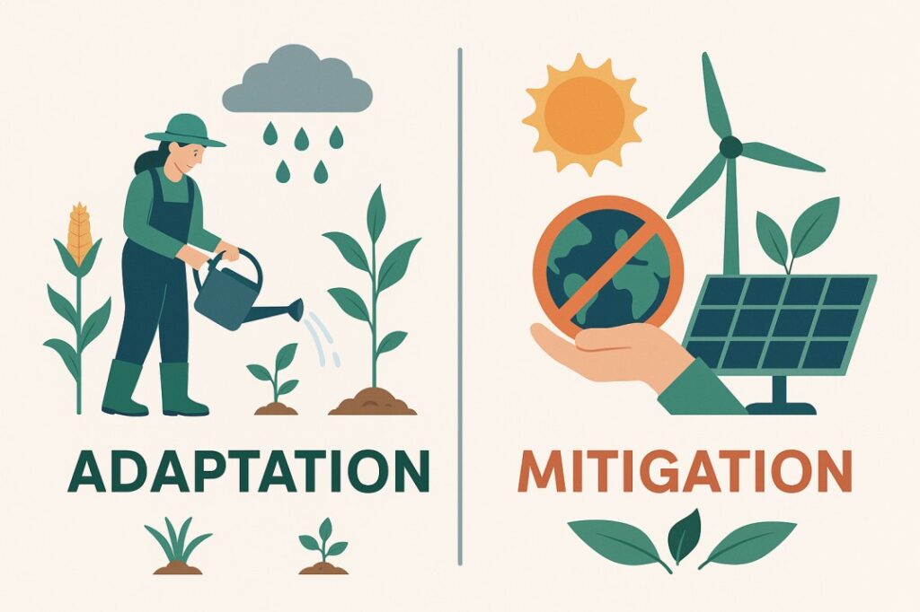 Deməli ağıllı kənd təsərrüfatında 2 yolla bu problemlərdən qaçınmaq olur: uyğunlaşma (adaptation), azaldılma (mitigation). Gəlin sizə bunu çox sadə şəkildə izah edim.